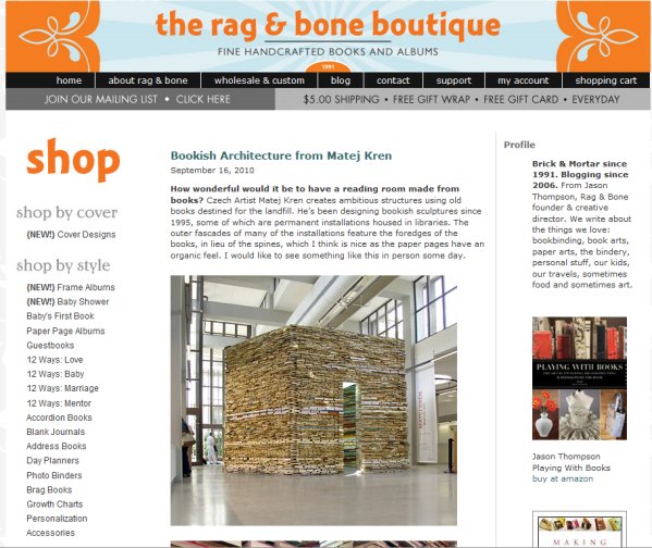 rag&bone berichtet über Bookish Architecture from Matej Kren. Im Artikel werden die architektonischen Gebilde von Matej Kren ausgestellt, die er aus Büchern konstruiert hat. Ich bin etwas zwiegespalten, was die Schönheit dieser fremden Objekte angeht: auf den ersten Blick sind sie faszinierend, auf den zweiten bedrohlich, wasmeint ihr? Schaut euch die Fotos an.